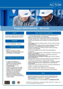 Email your CV and relevant supporting documents to sizwe.memela@actom.co.za hve.hr@actom.co.za