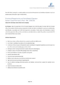 The ETDP SETA is looking for a Provincial Receptionist and Switchboard Operator.